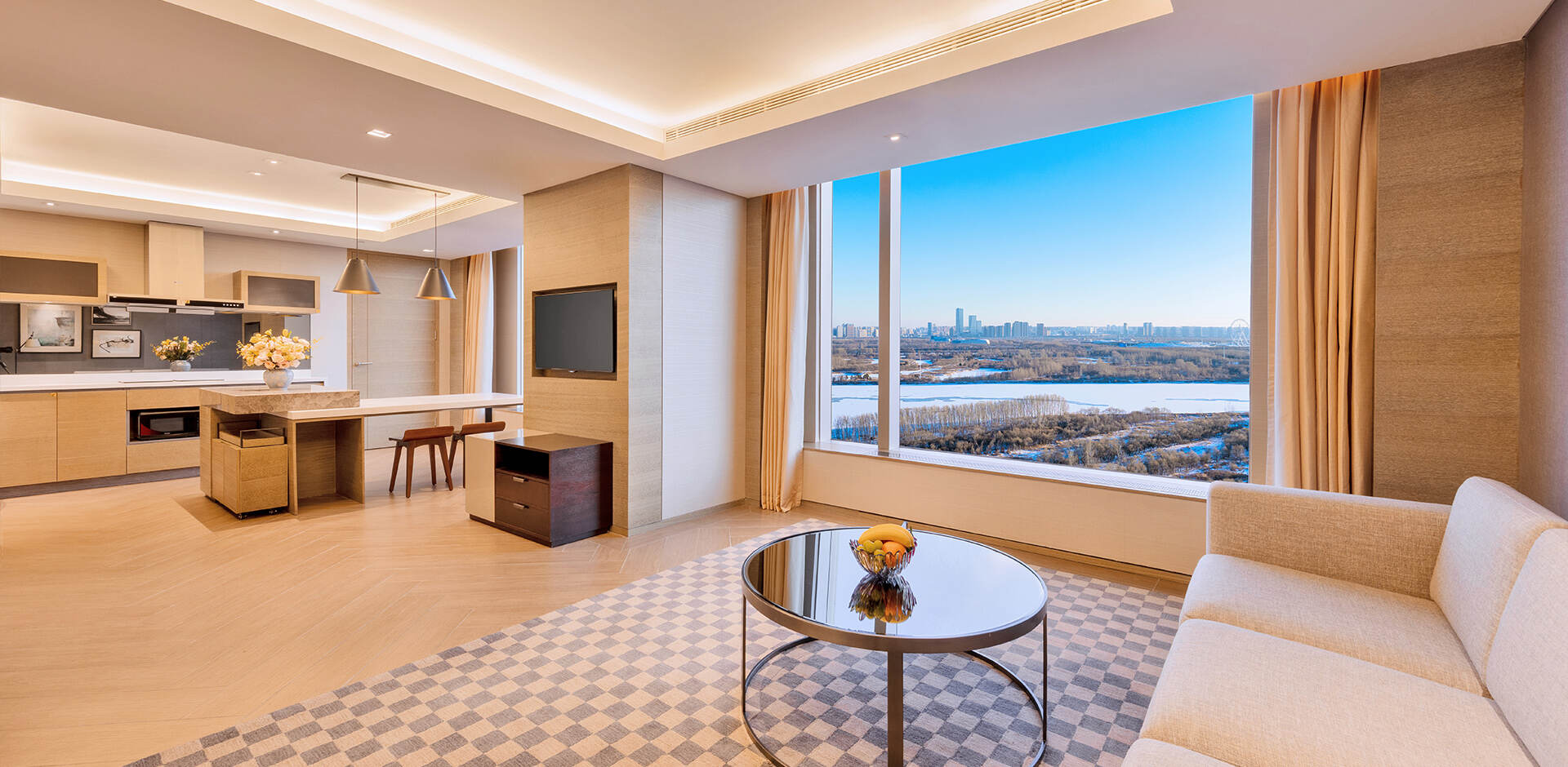 哈尔滨松北香格里拉的行政公寓奢华实用,是长住旅客的绝佳选择。温馨的装饰,时尚的氛围,设有设备齐全的现代化厨房及极具香格里拉特色的完善设施,为您营造如家般舒适环境。