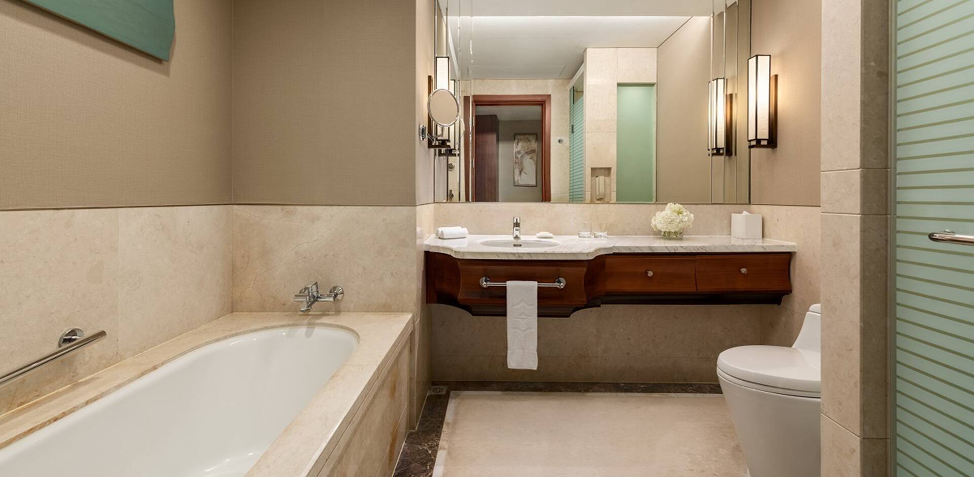 秦皇岛香格里拉共设有323间客房和套房,典雅实用的装潢,配搭温暖富有品味的色调,让人倍感惬意。每间客房面积为45-135平方米,宾客置身于此,可透过落地窗饱览风景如画的渤海景色。大部分客房设有宽敞的阳台,坐在供放松之用的座椅上,欣赏迷人的海景。豪华阁海景客房位于酒店16-22层,为追求高标准入住环境的宾客提供个性化服务。