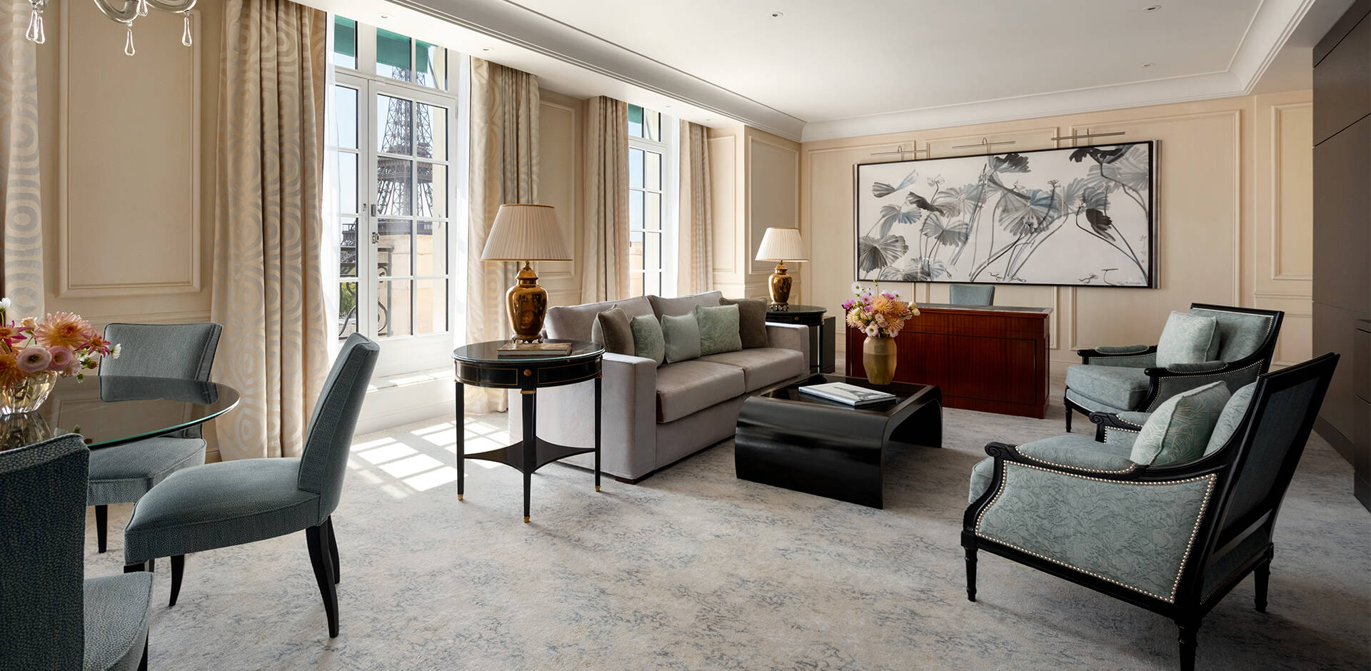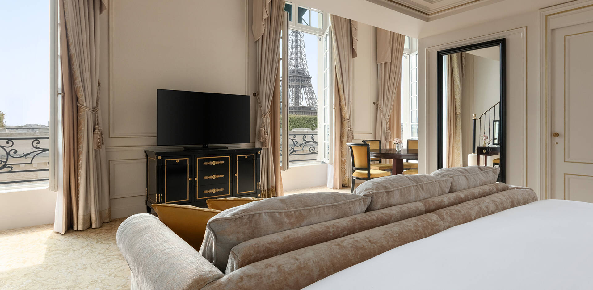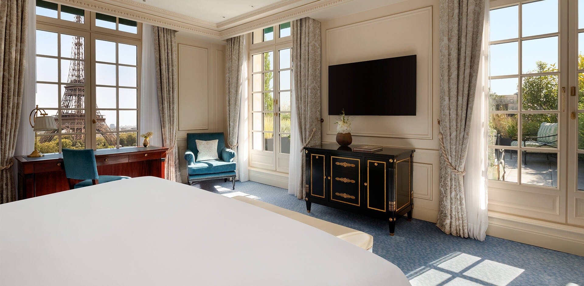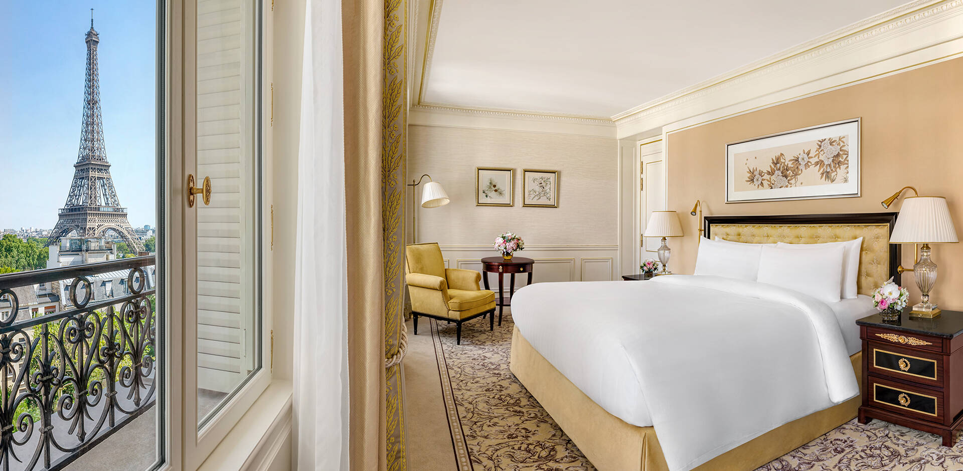 Offrant les vues les plus spectaculaires sur la Tour Eiffel ou sur l’avenue d’Iéna, nos chambres et suites combinent le charme d’une demeure typiquement parisienne.