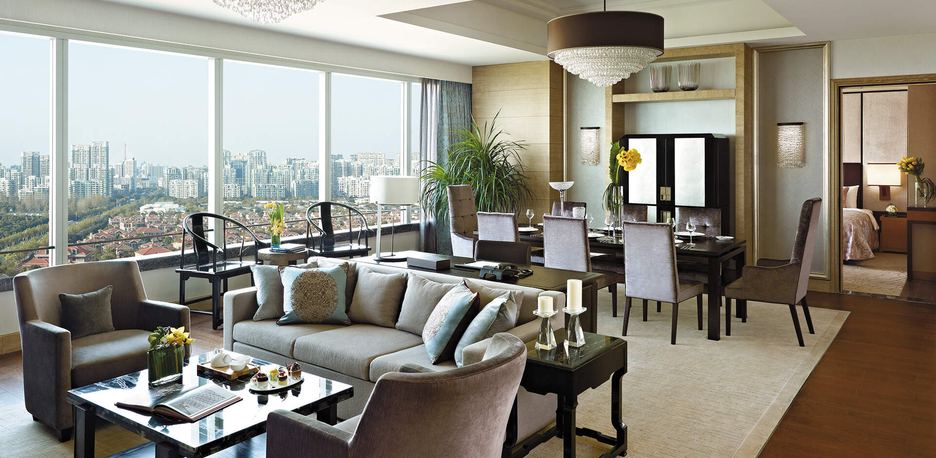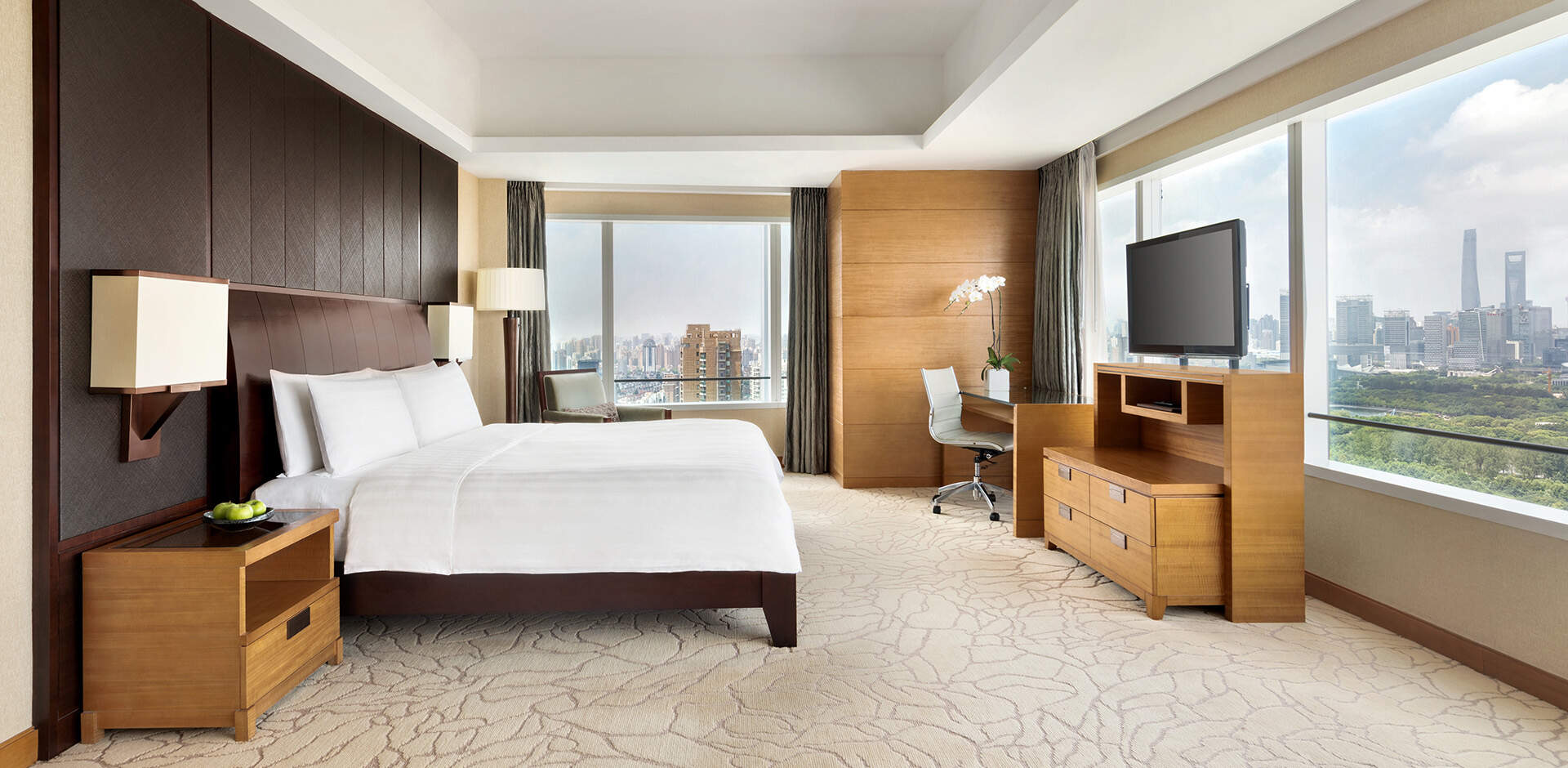 ケリーホテル 浦東 上海では、客室面積が42~168平方メートルのゲストルームを574室ご用意しております。すべてのゲストルームとスイートでは、ワイドビューウィンドウからの世紀公園または市街地の眺めと広々とした環境をお楽しみいただけます。